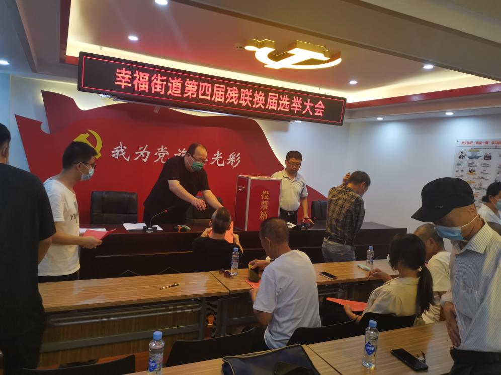 会上,大会按照换届选举工作要求和流程,表决通过了换届选举办法和监票人及计票人,采取等额选举办法,以无记名方式投票,选举产生了第四届幸福街道残联主席、理事长。