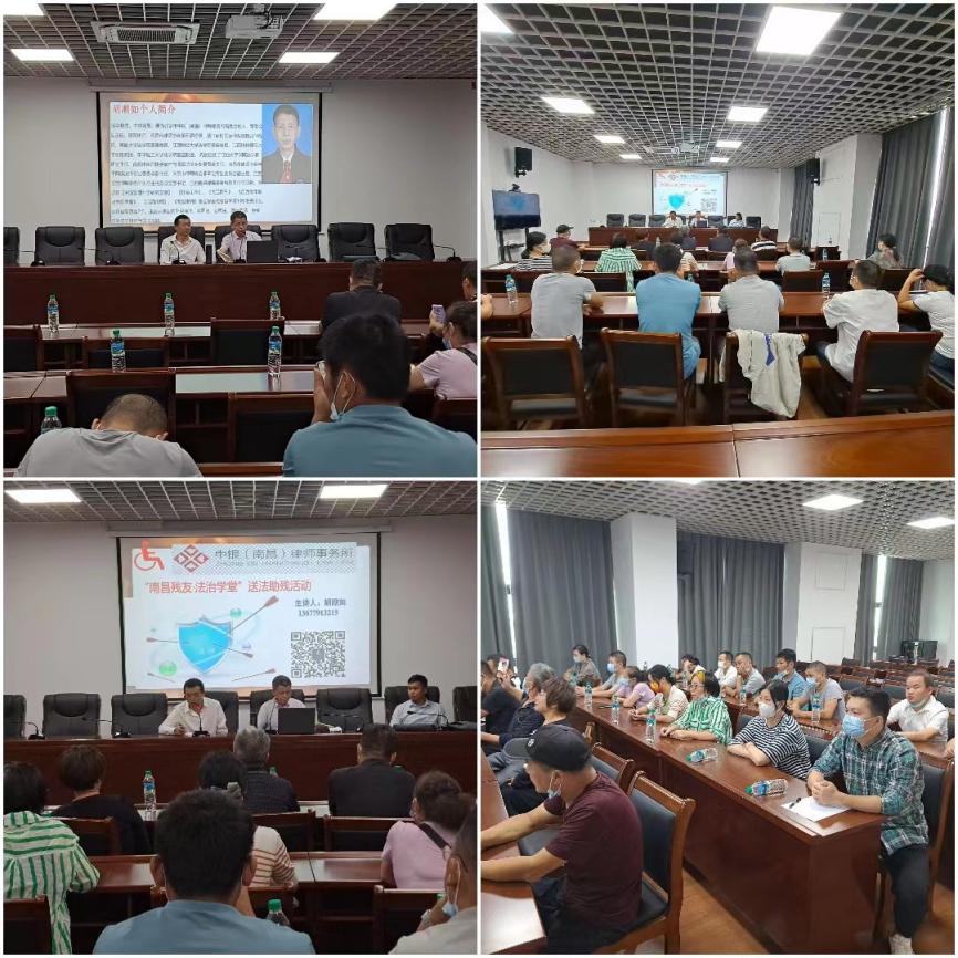 为做好我会2022年全面依法治理和普法宣传教育工作,进一步加大我区残疾人普法力度,经研究,决定在2022 年9月22日方大中心1308会议室联合南昌市残联、北京市中银(南昌)律师事务所共同开展2022 年“南昌残友·法治学堂”送法助残宣讲会。区盲协、肢协、精协、智协班子成员及亲友,区残联相关人员参会。