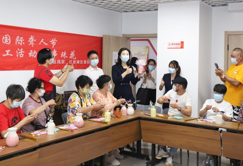 9月24日上午,在第65届“国际聋人节”来临之际,红谷滩区聋人协会开展“手工串珠花”活动,庆祝自己的节日。活动当日,区委副书记万晓娟代表区委区政府看望慰问了参加活动的聋人朋友,祝福大家节日快乐,并参与到活动中,共同度过了一个美好、特殊、难忘的节日。区残联理事长贺学风陪同,聋协会员30余人参加活动。