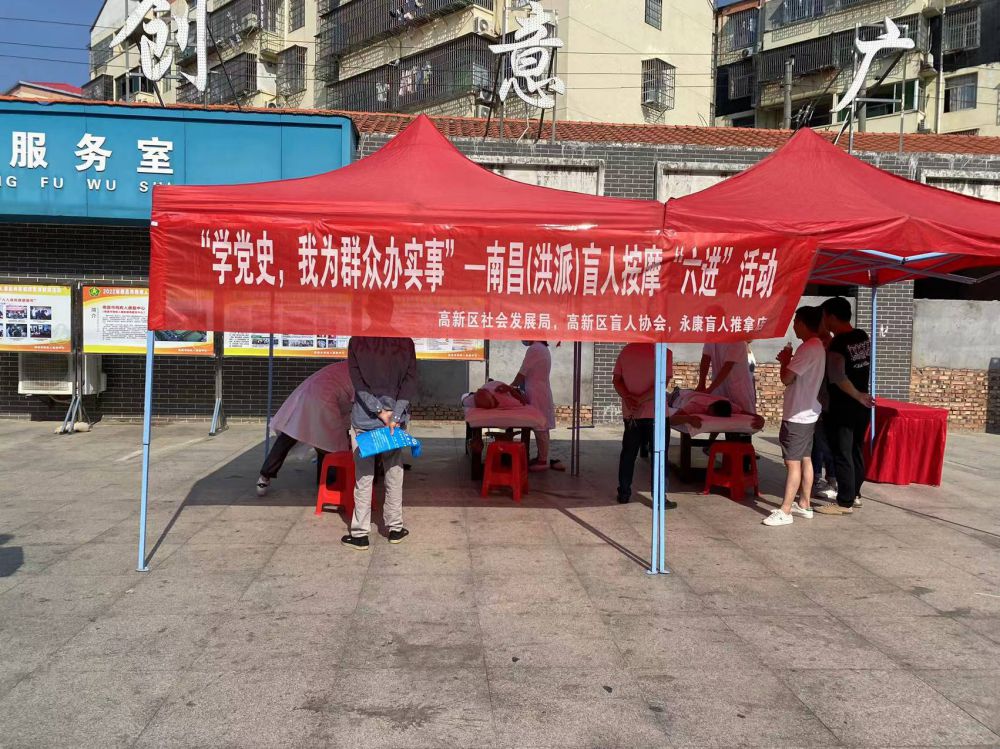 为推动残疾人事业发展,广泛宣传南昌(洪派)盲人按摩。9月27日,市残联在高新区艾溪湖管理处南塘村开展“学党史,我为群众办实事--南昌(洪派)盲人按摩‘六进’活动”。