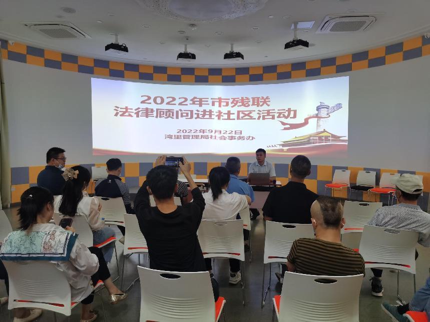为提高残疾人群体对惠残政策的知晓率,形成守法知法用法的良好氛围,扩大普法教育覆盖面,9月22日上午,社会事务办邀请北京市中银(南昌)律师事务所胡顺如律师到湾里管理局九湾社区,开展2022年市残联法律顾问进社区活动,就民事诉讼法及其法律援助制度相关热点问题举办专题普法宣传讲座。各镇(街)残疾人工作者、五大协会成员、残疾人等20余人参加。