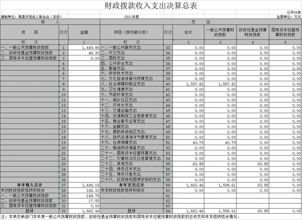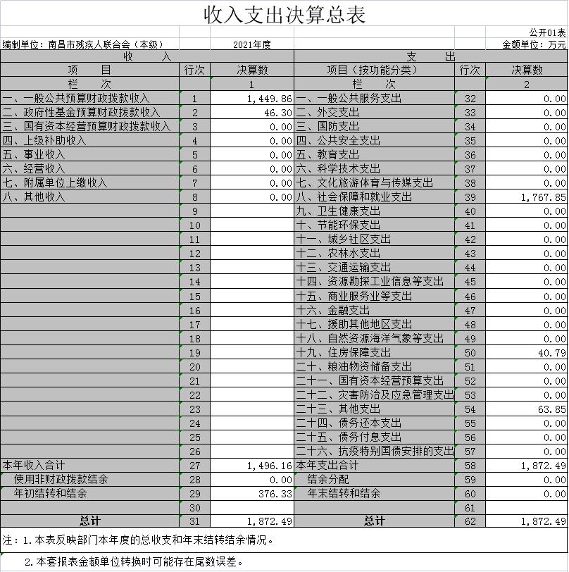 南昌市残疾人联合会(本级)2021年度决算