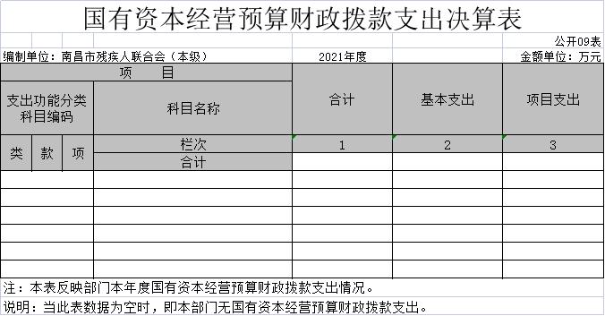 九、国有资本经营预算财政拨款支出决算表
