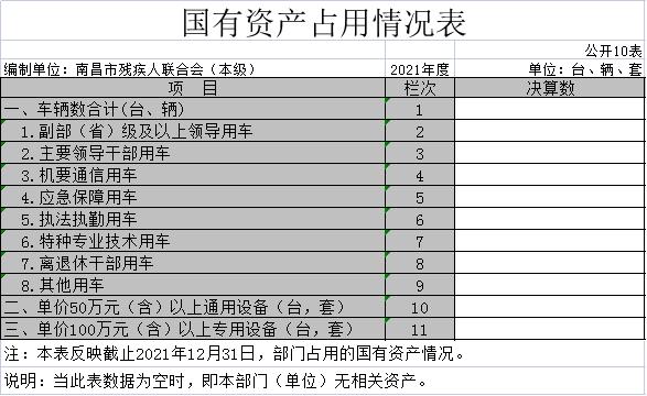 十、国有资产占用情况表