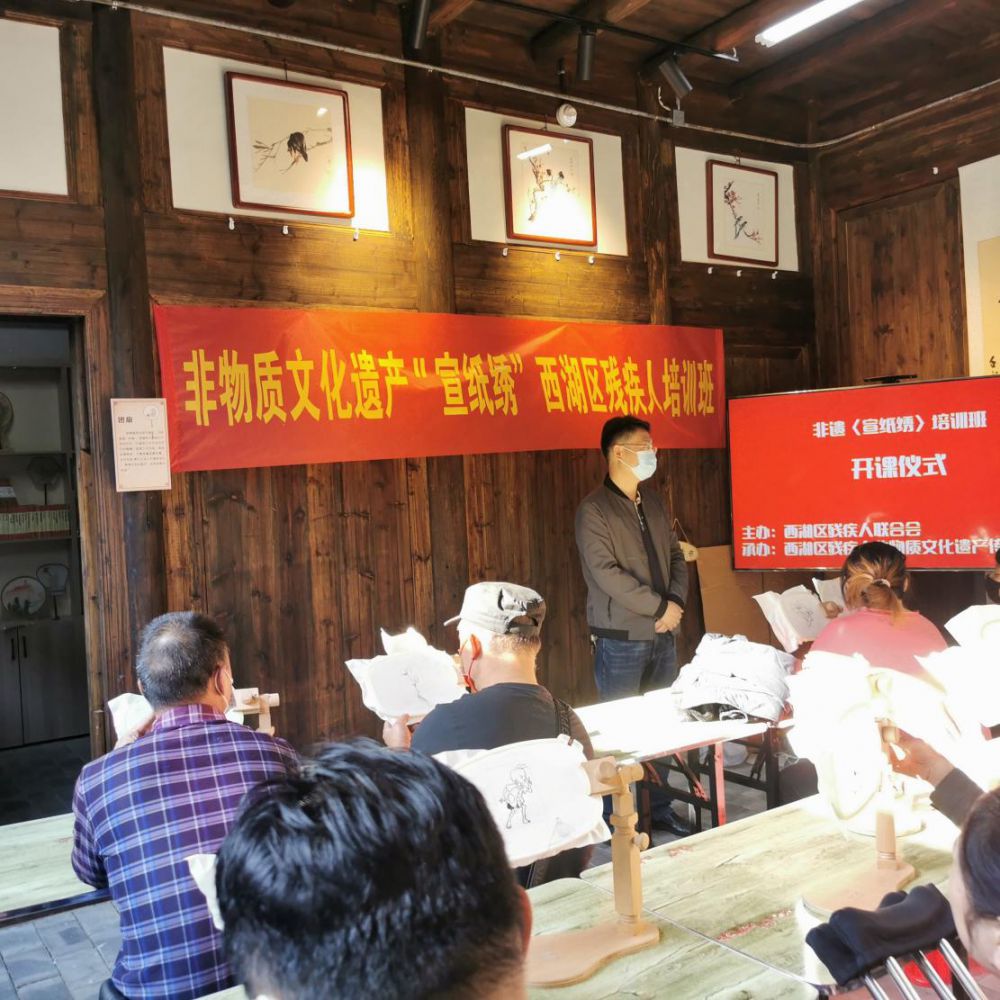 在西湖区残疾人联合会的组织和大力推动下,2022年首期残疾人非遗“宣纸绣”培训班正式开班。10月14日,开班仪式在南昌市西湖区残疾人非物质文化遗产传习中心隆重举行。西湖区残联副理事长胡翔出席开班仪式。