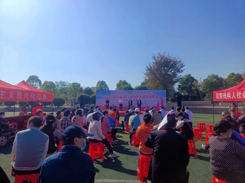 为贯彻党和政府稳就业、保就业决策部署,进一步帮助应届残疾人高校毕业生、残疾人就业困难人员等重点群体解决就业问题,落实好人力资源社会保障部、民政部、中国残联组织的“暖心活动”,集中开展送岗位、送服务、送政策、送温暖。10月21日上午,以“援助暖民心 就业解民忧”为主题的2022年南昌市第八场残疾人就业招聘会在青云谱区包家花园体育休闲公园举办。