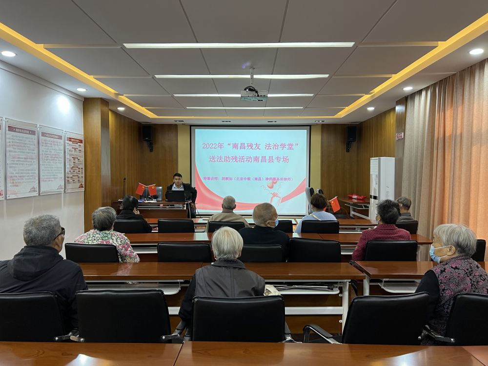 为贯彻党的二十大报告中“坚持全面依法治国,推进法治中国建设”精神,推动法治宣传教育工作取得新成效,10月26日,市残联邀请法律顾问深入南昌县、青山湖区开展“南昌残友•法治学堂”送法助残活动,把法律知识送到残疾人朋友身边。