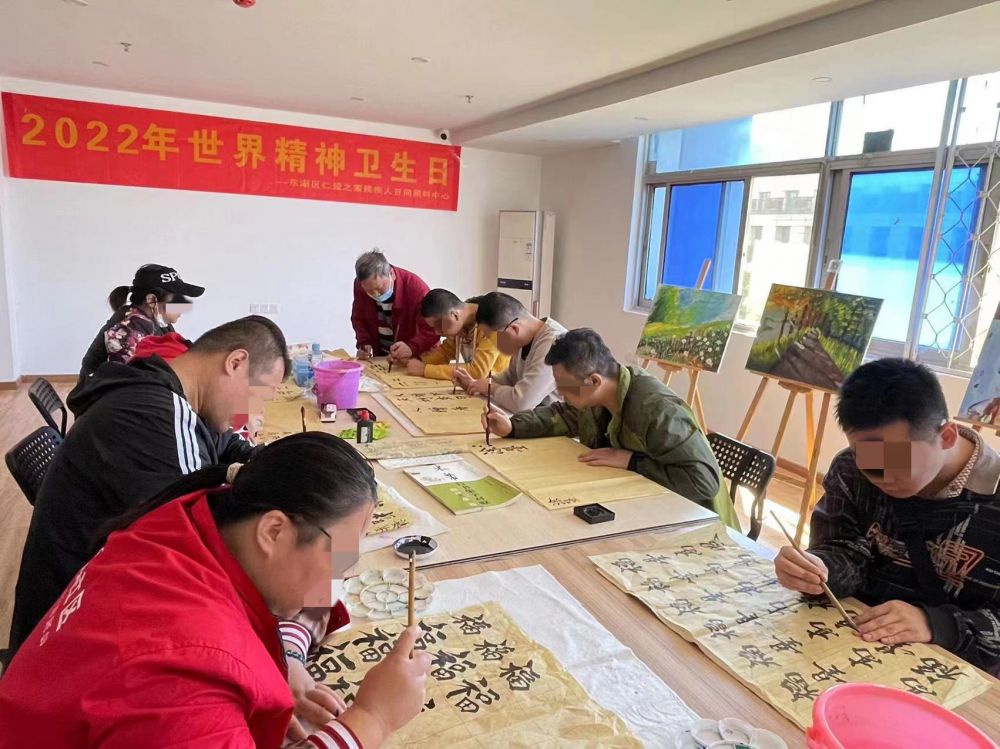 活动中,机构老师和心理咨询师作了精神卫生知识讲座,普及了如何释放压力、焦虑、失落等负面情绪的方法,积极引导大家做情绪的主人,帮助精神障碍患者和家属正确地认识心理健康问题。座谈会后,老师用爱倾听精障患者心声,带领大家一起进行书法、绘画等心理治疗课程,进行康复运动,共筑心理健康。