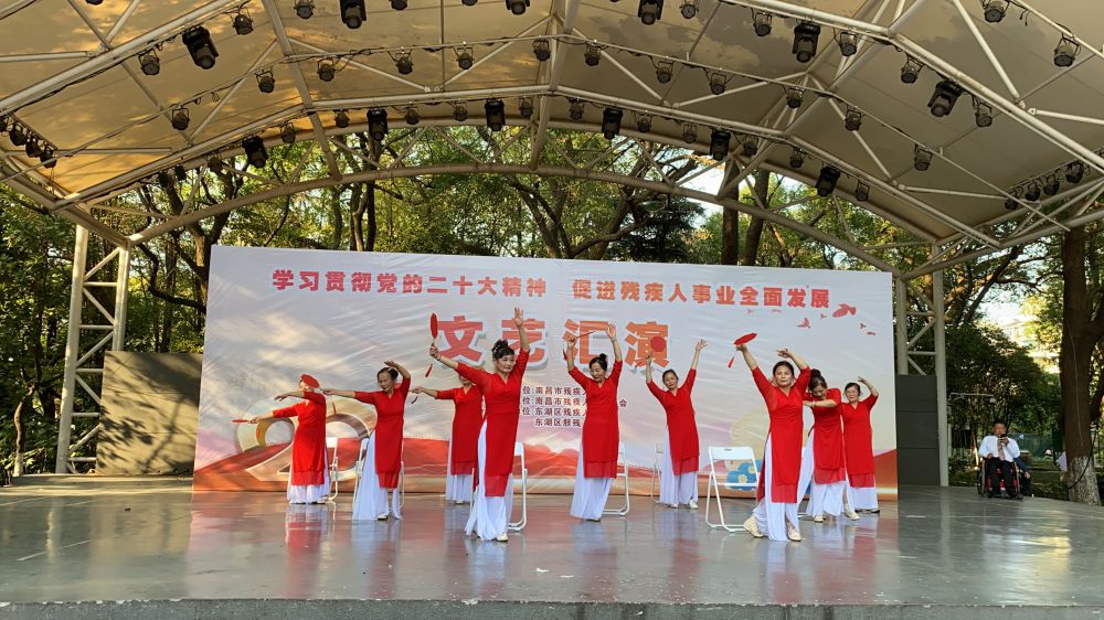 11月10日下午,南昌市八一公园百花大舞台,歌声嘹亮,人声鼎沸。南昌市残疾人音乐协会,为贯彻党的二十大精神,促进残疾人事业全面发展,在这里举行了一场丰富多彩的文艺节目。