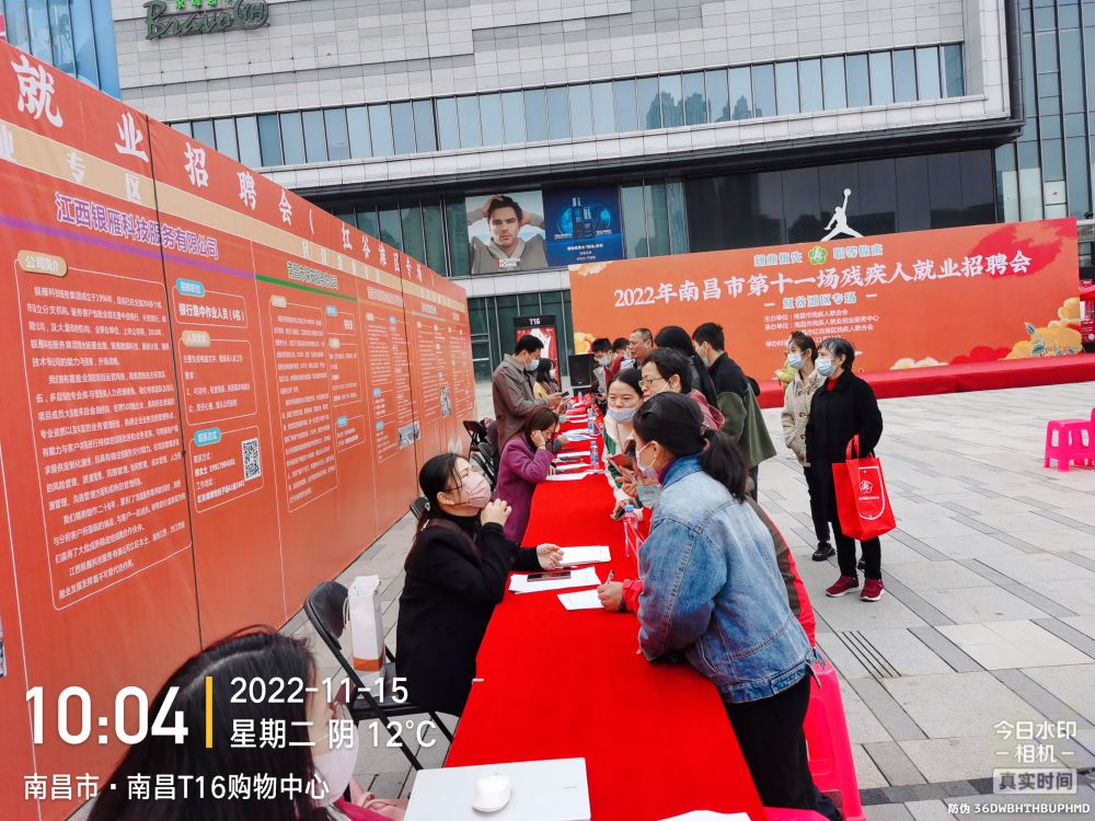 为贯彻落实党和政府稳就业保就业决策部署,帮助用人单位解决招工难题,为有就业需求的残疾人提供就业服务。11月15日上午,以“就业优先 职等你来”为主题的2022年南昌市第十一场残疾人就业招聘会在红谷滩区铜锣湾广场举办。