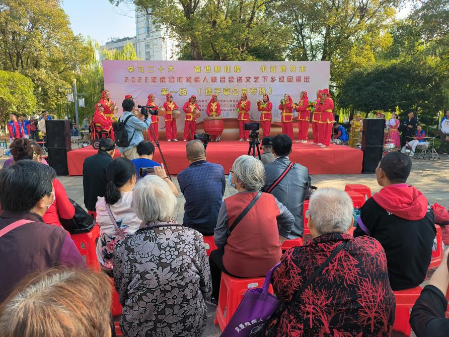 为学习宣传贯彻党的二十大精神,加快残疾人文化建设,活跃残疾人文化生活,满足残疾人精神文化需求,以“学习二十大 奋进新征程 永远跟党走”为主题的2022年南昌市残联送文艺下基层巡回演出第一场于11月10日上午9:30在西湖区孺子亭公园正式开始。