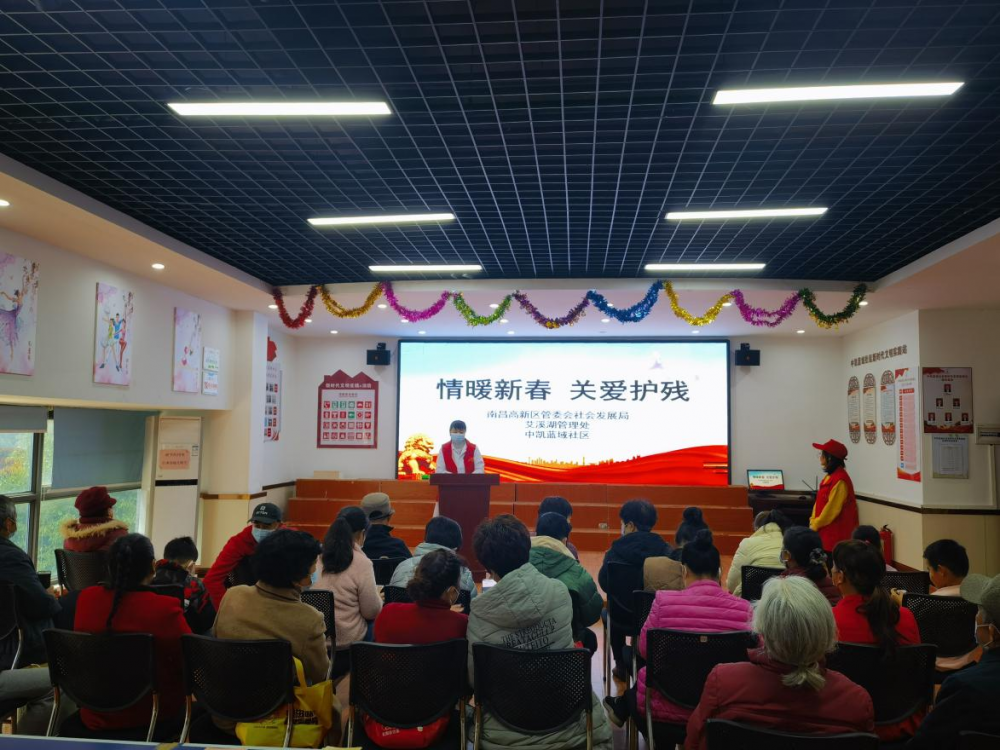 为关爱残疾人身心健康,进一步提升残疾人家庭的幸福生活指数。2023年1月13日,艾溪湖管理处在中凯蓝域社区对辖区残疾人及残疾人亲属开展了关爱残疾人健康讲座活动。