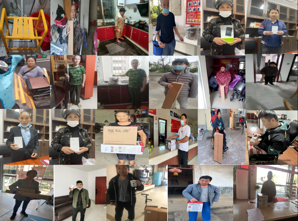 此次共为23名残疾人分别发放了扶手、移动浴凳、语音闪光开水壶、遥控插座、盲人电饭煲、压力锅、防走失腕表、盲表、盲人语音电磁炉、液晶手写屏等共计30件无障碍器具(用品)。