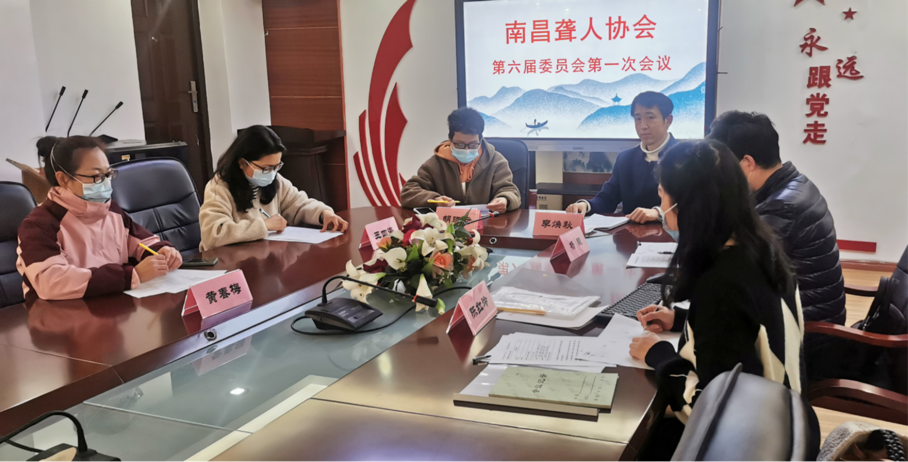 2023年2月18日上午,在南昌市启音学校三楼会议室,南昌聋人协会召开了第六届委员会第一次会议。南昌聋协名誉主席胡晓云出席会议,副主席杨毅、副主席王四海、副主席黄春梅、秘书长陈红玲参会,南昌聋协主席李焕秋主持会议。