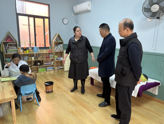 3月3日上午,区残联党组书记、理事长余国权,区委教体工委委员、副局长饶和庆一行实地走访启源脑瘫智障康复中心,详细了解残疾儿童特殊学前教育融合情况。