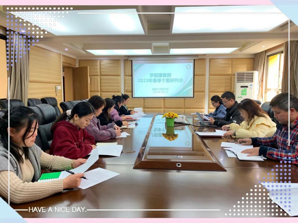 春和景明,万物生长。为使每个孩子都能得到适宜的教育与发展,提供更为专业的个别化教育,进一步推进教育康复工作的提升,近日,东湖区特教学校——南昌市培智学校学前康复部召开2023年春季个案研判会。校长秦文英、副校长胡令超及学前部师生、家长代表参与会议,会议由副教导主任娄爱清主持。