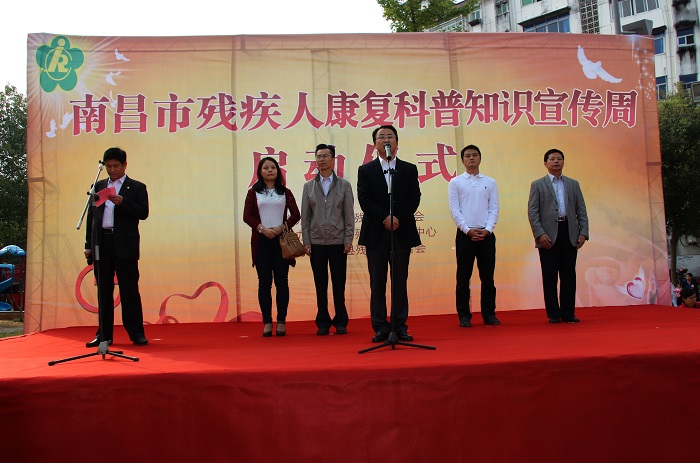 图一:南昌市残联党组书记、理事长余颖宣布南昌市残疾人康复科普知识宣传周活动启动