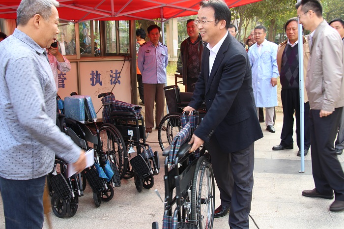 图二:南昌市残联党组书记、理事长余颖给残疾人发放辅助器具