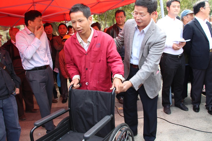 图三:南昌市残联党组成员、副理事长林善岳给残疾人发放辅助器具