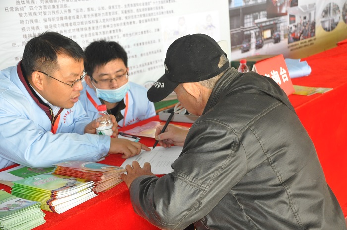 图一:市残疾人康复中心工作人员细致讲解康复知识