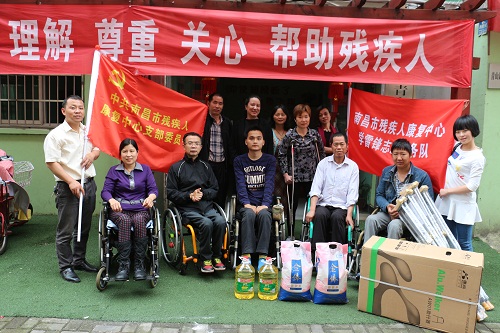 为充分发挥党支部战斗堡垒作用和党员先锋模范作用,发挥支部的力量与爱心,从实际上为残疾朋友以及困难群众办实事、做好事,5月24日,南昌市残疾人康复中心组织全体党员干部职工来到南昌脊髓损伤者“中途之家”,为残疾朋友送去了大米和食用油等生活必需品以及助行器和拐杖等辅助器具;同时,康复中心党员干部职工还主动为残疾朋友整理房间、打扫卫生,关切地询问他们的身体健康状况和生活情况,给残疾朋友送去了精神的关爱和心灵的慰藉,让他们感受到了党和政府的关怀和温暖,以实际行动助推了“两学一做”。