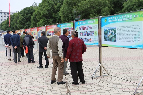 图三:市民驻足观看南昌市残疾人康复中心制作的宣传展板