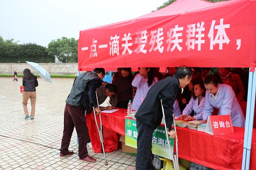 南昌市残疾人康复中心支部党员为市民提供咨询、登记等服务