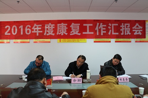首先,市残联康复处处长于文凯、市残疾人康复中心主任杨昕就2016年康复工作以及2017年的工作思路和打算进行了汇报。随后,各单位工作人员对2016年康复工作进行了经验交流,对2017年康复工作所存在的盲点和难题进行了探讨。副理事长林善岳对康复各项工作提出了指导意见和要求。