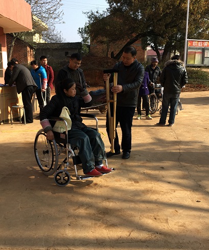 为满足我市残疾人基本康复服务需求,让残疾人感受政府的更多关怀,增强残疾人的获得感,12月15日,南昌市残疾人康复中心与新建区流湖镇淑溪村挂点扶贫单位市机管局来到淑溪村,为残疾村民送去了轮椅、手杖、手杖凳、盲杖、腋拐等辅助器具。身患残疾的新建区流湖镇淑溪村村民熊世贞从南昌市机关事务管理局局长李林和南昌市残疾人康复中心主任杨昕手中接过轮椅后激动地说道:感谢党和政府,感谢市残联,你们给我们配发的轮椅真的让我们很感动!