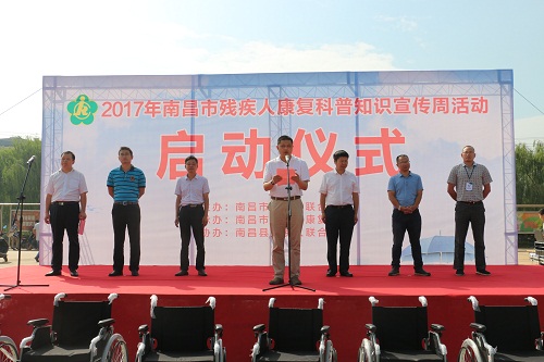 10月10日上午,由南昌市残疾人联合会主办,南昌市残疾人康复中心承办,南昌县残疾人联合会协办的2017年南昌市残疾人康复科普知识宣传周活动启动仪式在南昌县蒋巷镇举行。南昌市残联党组成员、副理事长邓林和,南昌县县政府副县长刘玉出席活动并讲话,启动仪式由市残疾人康复中心主任杨昕主持。