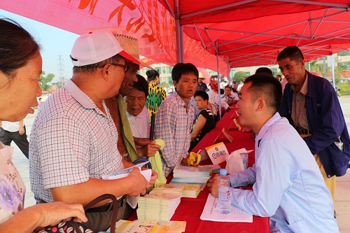 康复中心工作人员为群众发放康复科普知识手册并答疑解惑