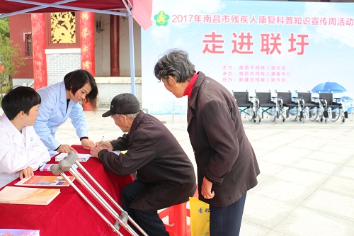 10月19日上午,南昌市残疾人康复科普宣传周活动在新建区联圩镇进行。活动包含了为部分残疾人发放辅助器具,现场展示康复各类知识的宣传展板、政策知识咨询、现场义诊、需求登记等服务。专业康复医生为前来的村民进行了眼部和听力检查、量血压、测血糖等多项健康检查;康复中心工作人员发放了康复知识折页及《残疾预防和残疾人康复条例》手册,为残疾人进行康复需求登记等服务。这些活动旨在为村民及残友送去知识,送去服务,送去健康,活动受到了百姓的一致好评。