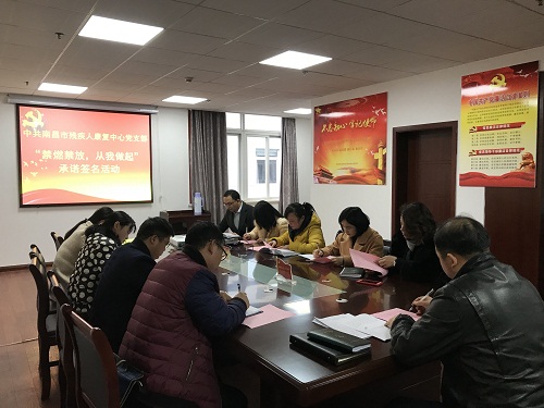 2018年春节将至,为进一步推动“禁燃”工作,坚持移风易俗,倡导文明新风,共同促进“美丽南昌·幸福家园”的创建,2月9日下午,南昌市残疾人康复中心党支部在党员活动室开展“禁燃禁放,从我做起”承诺签名活动。