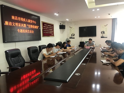根据市残联机关党总支关于印发《南昌市残疾人联合会2018年度上半年党支部专题组织生活会实施方案》的通知要求, 8月27日,康复中心党支部围绕“怕慢假庸散”和弘扬廉洁文明家风方面存在的问题,召开专题组织生活会。市残联党组成员、副理事长邓林和出席会议并指导。