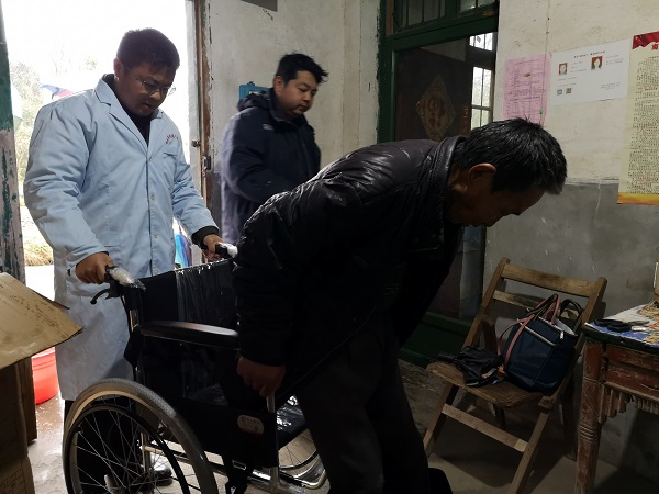 向塘镇璜溪村一位贫困残疾人罗大爷是独居老人,生活上无人照料,因脑中风偏瘫导致落下残疾。一次走访中,市残疾人康复中心工作人员发现老人所使用的轮椅早已超过使用年限,于是冒着寒风将轮椅及时送到罗大爷家中,为其细心讲解轮椅使用方法及注意事项等,并叮嘱他要照顾好自己,坚强乐观,努力生活。
