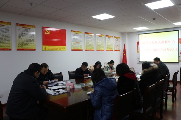 根据南昌市人力资源和社会保障局《关于做好2018年度事业单位工作人员年度考核工作的通知》及《南昌市残疾人康复中心2018年度工作人员年度考核实施方案》等文件,1月16日,南昌市残疾人康复中心召开2018年度干部职工年终考核大会,会议由康复中心主任杨昕主持,市残联副理事长邓林和出席会议。