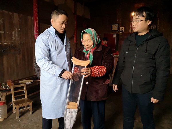 为满足残疾人的需求,提高残疾人的生活质量,1月16日下午,南昌市残疾人康复中心工作人员到新建区松湖镇仙亭村,新建区松湖镇抗援村、新建区流湖镇淑溪村等地为残疾人发放轮拐杖、轮椅、尿不湿等辅具(用品)。新建区松湖镇仙亭村的陶奶奶接过拐杖动情地说道:“党和政府真好啊,我有了拐杖,出行就便利了。我们会珍惜如今的好生活,热爱当今的好社会,为家人和社会减轻负担。”