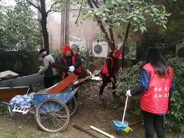 开展社区志愿服务活动,是弘扬中华民族传统美德和志愿者精神的行动体现,是构建和谐社会,创建文明社区的重要手段。在社区,大家用带去的扫帚、铁铲、垃圾钳清除绿化带的杂草,清除卫生死角,捡拾白色垃圾,用铁铲清理周边的瓷片和废弃的木板。通过大家齐心协力,社区环境得到了美化。