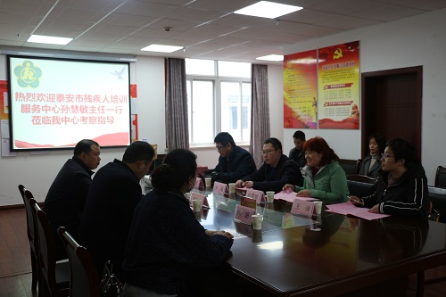 3月6日上午,泰安市残疾人培训服务中心孙慧敏主任一行来我中心考察康复工作。市残联党组成员、副理事长邓林和等陪同考察。
