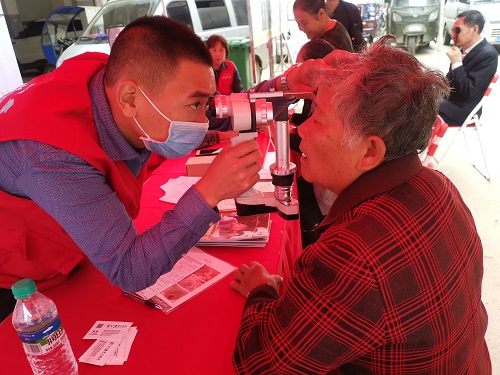 咨询台前,一位70岁的徐奶奶进行了康复需求登记,南昌市残疾人康复中心的工作人员向其发放了康复宣传折页和残疾预防知识手册,南昌康宁医院的医生为其进行了量血压和咨询服务,南昌爱尔眼科医院医生为其进行了眼健康检查。武阳镇的居民同徐奶奶一样,有序进行排队,依次感受来自康复工作者和医生的贴心服务。