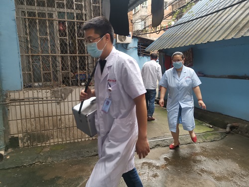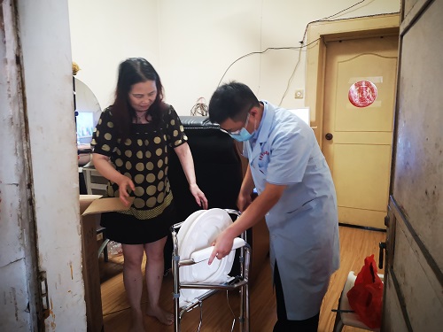 康复中心组织党员志愿者们为有需求的社区残疾人送去盲杖、坐便器等辅助器具。在社区残疾朋友家中,党员志愿者们为他们安装好了坐便器、告知他们使用盲杖的注意事项和扶残助残的惠残政策,并发放了残疾预防知识手册和康复知识宣传折页。随后,康复党员志愿者们同康宁医院医生一道为社区残疾朋友送去了药品,并为他们进行了健康指导,鼓励他们要坚强面对生活的困难,积极乐观生活。活动受到了社区残疾朋友的一致好评。