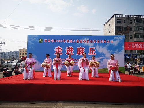活动现场,人头攒动,热闹非凡。市残疾人康复中心工作人员在咨询台前为残友进行康复需求登记,并耐心解答疑惑,不仅给现场群众发放了康复知识宣传折页和残疾预防知识手册,还派出服务小分队到麻丘镇的沿街店面上门发放宣传资料;南昌康宁医院医生为居民进行了量血压、健康咨询等义诊服务;文艺节目演出者们在台前为群众表演了快板、三句半说唱、歌曲舞蹈等。麻丘镇一位残友家属主动说道:“我记得去年你们来过高新,通过你们的宣传,我们了解了很多康复知识,懂得了残疾预防的重要性,今年你们的活动还有康复知识文艺节目,把康复知识融入到了快板、三句半等节目当中,很新颖,形式更丰富了,真心为你们点赞”。