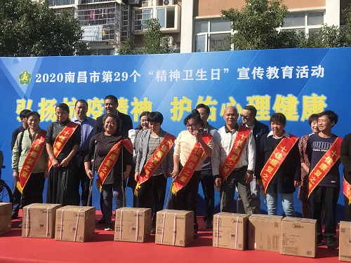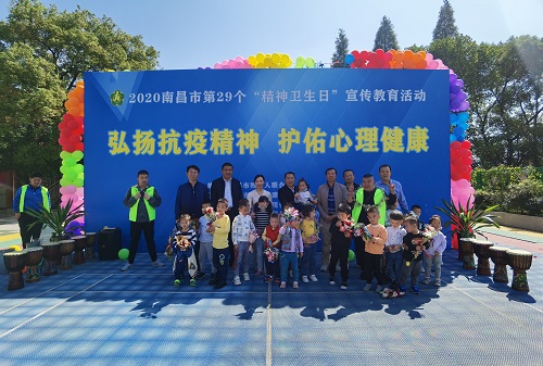 2020年10月10日是第29个世界“精神卫生日“,为进一步提升全民精神卫生和心理健康意识,倡导社会关注、支持精神卫生和心理健康工作,激励广大精神卫生和心理健康工作者做好新冠肺炎疫情相关心理疏导、心理干预等工作,10月10日上午,南昌市残疾人康复中心在西湖区现代残疾人托养中心举行了以“弘扬抗疫精神 护佑心理健康”为主题的宣传教育活动,市残联党组书记、理事长余颖,副理事长邓林和出席活动,并与孩子们合影。