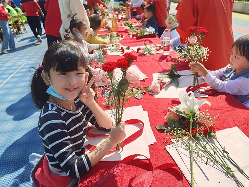 活动在欢快的气氛拉开了序幕,在“感恩父母,鲜花献礼“的环节中,孩子在老师的带领下相互合作,一束束美丽的手工花束呈现在我们面前,孩子们把自己亲手制作的花束献给陪同的父亲、母亲,并怯怯地说上一句:“我爱你“。每一位家长脸上都洋溢前些幸福的笑容。在”护佑心理健康“心理沙龙中家长们在陈虹老师的带动下通过简单的互动环节拉近了距离,营造了轻松愉悦的氛围,家长们纷纷表示收益良多。