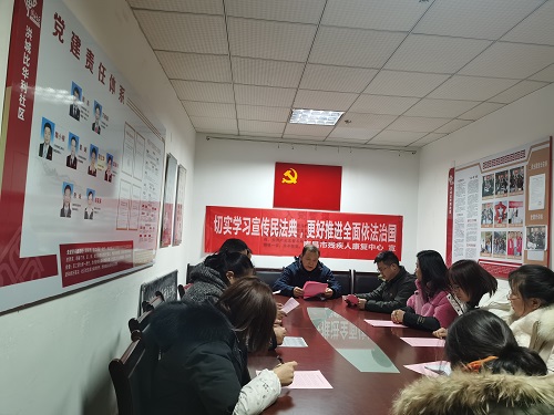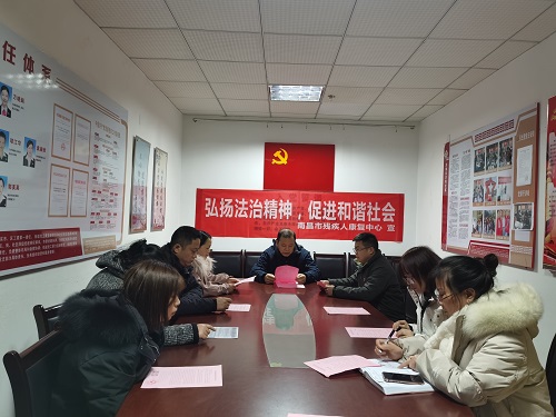 一行人在康复中心主任杨昕的带领下来到结对共建社区洪城比华利,悬挂了关于法治宣传条幅,并与社区同志一起学习了习近平总书记关于法治的重要论述。在集中学习过程中,大家纷纷谈感想,讲体会,认为在新时代下深入学习宣传习近平法治思想,大力弘扬宪法精神十分必要;认为只有学好用好民法典,才能更好地做知法守法好公民。康复中心杨昕主任也表示,中心今后不仅在法治宣传工作中继续加强与结对共建社区的联系,在党建+帮扶志愿服务、文明创建等工作中继续协作,为共建和谐稳定社会环境共同努力。