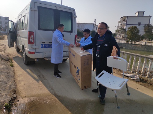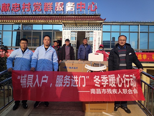 1月4日,2021新年上班的第一天,市残疾人康复中心继续开展“辅具入户,服务进门”冬季暖心行动,组织人员来到新建区大塘坪乡,为残疾朋友送来了轮椅、洗浴凳等辅具。