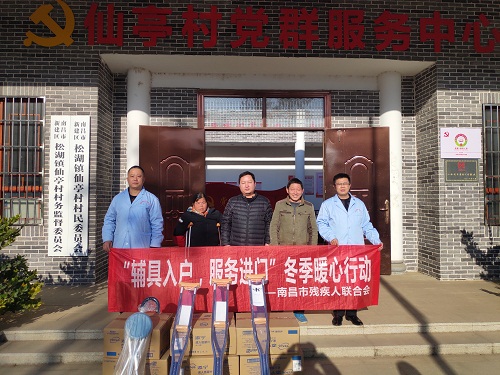 1月12日下午,市残疾人康复中心组织人员来到江铃集团挂点扶贫村新建区松湖镇仙亭村开展“辅具入户,服务进门”冬季暖心行动,为残疾人配送辅助器具。