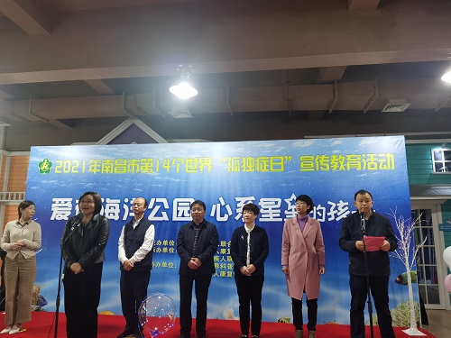 南昌海洋公园行政总监涂君致欢迎词,孤独症儿童家长代表致答谢词,南昌市残疾人康复协会会长洪丽娟代表残疾儿童康复机构致感谢词。