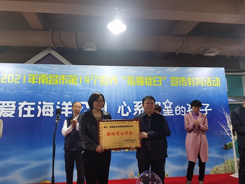 启动仪式上,市残联党组成员、副理事长吴卫平为南昌海洋公园颁发了助残爱心单位牌匾,以此呼吁更多的爱心企业与人士加入到扶残助残的爱心事业中,用真心真情关心、关爱这一特殊群体,在全社会营造一个理解、关心、支持、接纳残疾人的良好氛围。