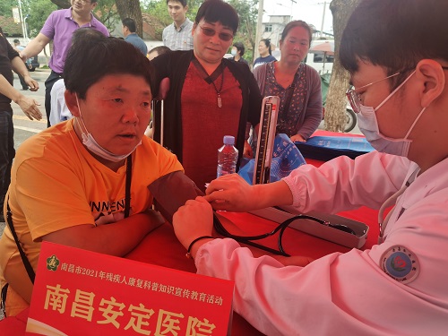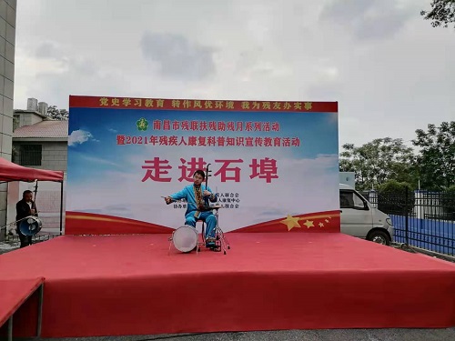 活动期间,南昌市残疾人演员们用诗朗诵、二胡、舞蹈等不同形式的表演方式,向群众介绍了南昌残疾预防和残疾人康复工作近年来取得的成效;南昌安定医院和南昌康定医院充分发挥行业优势,对前来问询的群众提供量血压及健康咨询服务;江西省康复医学会康复工程专委会组织人员对现场群众提供专业的康复咨询服务;江西中康康复器具有限公司组织专业的适配人员提供辅具适配等咨询服务;南昌市残疾人康复中心通过宣传展板,展示了“十三五”期间南昌残疾人康复成果展,并科普了残疾预防和残疾人康复知识。整个活动发放惠残政策解读等宣传资料100余份,提供义诊服务60余人次。